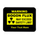 A black and yellow warning sign with text reading, "WARNING, BOGON FLUX, MAY EXCEED SAFETY LIMIT." A radioactive material warning symbol also appears. Add your own additional text. The bogon is an elemental particle which carries the property of bogosity, or being bogus (i.e., fake of bad). All humans are natural low-level bogons emitters. Emission levels fluctuate over time. Politicians, other individuals such as used car salesmen, are high level sources of bogons. When such individuals emit extremely high levels of bogons, as when making campaign promises, a bogon flux may occur. A bogon flux can be very dangerous to those in the area. Bogon was originally hacker jargon having to do with bogus addresses on a computer network. bogon "bogon flux" humour funny politics politician internet computer warning radioactive "quantum bogodynamics" yellow black devoe "david devoe"