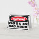 Warning BOSS IN BAD MOOD Greeting Card you can customize at www.WarningSignShirts.com and features a red and black warning sign and BOSS IN BAD MOOD in bold black letters to warn the world. You can also customize your own warning sign Greeting Card with the text you want.