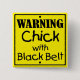 Warning Chick with Black Belt Square Button