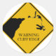 Warning sign depicting two base jumpers face to face. Text: Warning Cliff Edge.