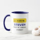 Elevate your coffee or tea break with a dash of humor! The "Warning: [Custom Name] Might Be Thinking in Binary" mug is the perfect gift for tech enthusiasts, programmers, and software engineers. Featuring a bold yellow warning sign and customizable name, this mug with a navy handle and interior brings geeky charm to your everyday routine. Personalize it to make it uniquely yours or a thoughtful gift for a coding wizard. 💡 How to Customize: - Click "Personalize this template" to add the name for a unique, personal touch. - Want more changes? Choose "Edit using Design Tools" to adjust font type, color, or layout.