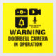A window cling sign for households with a smart doorbell. The design features a graphic of a doorcam with symbols for video and audio. The text reads “Warning Doorbell Camera In Operation” and “Video And Audio Recording”. An eye-catching design with black text on a yellow background.