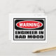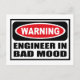 Warning ENGINEER IN BAD MOOD Postcard