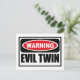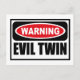 Warning EVIL TWIN Postcard you can customise at www.WarningSignShirts.com and features a red and black warning sign and EVIL TWIN in bold black letters to warn the world. You can also customise your own warning sign Postcard with the text you want.