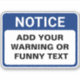 Custom warning sign to warn / inform people or make them laugh with an elegant eye catching design and your own custom title and message.