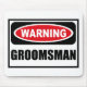 Warning GROOMSMAN Mousepad you can customise at www.WarningSignShirts.com and features a red and black warning sign and GROOMSMAN in bold black letters to warn the world. You can also customise your own warning sign Mousepad with the text you want.