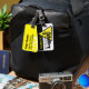 Humourous design with warning hazard sign and texts to customise. Design on luggage tag with name and address in back. You can easily change text (font, colour, size and position), background colour by clicking the customise button.