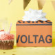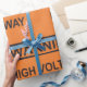A warning high voltage keep away sign in black on an orange background. This design looks really effective on these Wrapping Paper