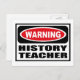 Warning HISTORY TEACHER Postcard you can customise at www.WarningSignShirts.com and features a red and black warning sign and HISTORY TEACHER in bold black letters to warn the world. You can also customise your own warning sign Postcard with the text you want.
