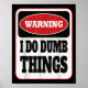 Warning I Do Dumb Things - Sarcasm Stud Stuff Them Poster