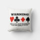 If you have a love-hate relationship with the game of bridge, you'll enjoy this wry bridge / duplicate bridge saying throw pillow featuring the four card suits. Comes with the truism saying that will make others do a double-take at the bridge table: "Warning! I Have A Love-Hate Relationship With The Game Of Bridge". Memorable throw pillow for anyone who has had winning and losing streaks when playing bridge/duplicate bridge!