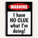 This funny notebook reads: WARNING! I have NO CLUE what I'm doing! This cute notebook is sure to get a laugh at work or school, or wherever you use it. The back cover has a small print disclaimer which reads: The owner of this book really does have absolutely no clue what they are doing. Please take appropriate precautions. Great gift for someone who feels overwhelmed by math or any other school subject.