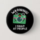 Warning I Shap At People Funny Camera Pun Dark BG 6 Cm Round Badge