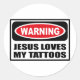 Warning JESUS LOVES MY TATTOOS Sticker