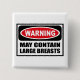 Warning MAY CONTAIN LARGE BREASTS Button you can customise at www.WarningSignShirts.com and features a red and black warning sign and MAY CONTAIN LARGE BREASTS in bold black letters to warn the world. You can also customise your own warning sign Button with the text you want.