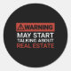 Warning May St Talking About Real Estate Classic Round Sticker