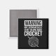 Warning - May Spontaneously Start Talking About Crochet. This funny crocheting lover accessory is a great idea for the crocheter in your life. Perfect for women, men, boys, girls, teens & kids who love to crochet & craft, and love yarn! If crocheting is your hobby, you're a yarn lover and you love crafting with a crochet hook and balls of yarn, then this crocheter design is for you! Includes a graphic of a crochet hook with a ball of yarn.