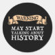 Warning! May Start Talking About History Funny Classic Round Sticker