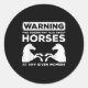 Warning May Talk About Horses Funny Riding Men Wom Classic Round Sticker