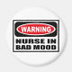 Warning NURSE IN BAD MOOD Magnet you can customise at www.WarningSignShirts.com and features a red and black warning sign and NURSE IN BAD MOOD in bold black letters to warn the world. You can also customise your own warning sign Magnet with the text you want.