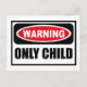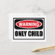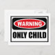 Warning ONLY CHILD Postcard you can customise at www.WarningSignShirts.com and features a red and black warning sign and ONLY CHILD in bold black letters to warn the world. You can also customise your own warning sign Postcard with the text you want.