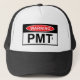 PMT warning sign baseball caps for women complete with funny,scary hanging man silhouette to warn others of your PMT and your associated PMT mood swings,ha ha! Scare men in a PMT warning sign T shirt this Autumn!
