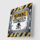 This humourous distressed sign features "WARNING:" above the declaration "HIGHLY SARCASTIC - APPROACH WITH CAUTION". A prominent black skull and crossbones symbol reinforces the tongue-in-cheek warning. The entire metal-look sign is set against a grungy, chipped yellow wall with diagonal black hazard stripes, creating a bold, witty statement piece.