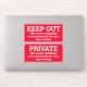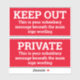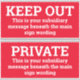 Two warning signs. Change the wording to display your own message on each. Medium size. 6 inches wide.