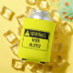 Warning Work Allergy funny warning sign in bright safety yellow and black font lettering with a exclamation warning symbol in a yellow triangle.