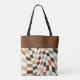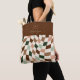 Warped Chequerboard Neutral Personalised Monogram Tote Bag. Double-sided design. Shown in a boho palette of browns, greens, and cream. Personalise the template with a monogram letter and name. ALL COLORS ARE EDITABLE. Any questions? Feel free to send me a message. © Kimbellished, LLC