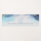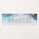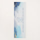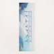 Exercise motivation mat with warrior poses and boho typography on blue and gold ink graphic background. Mastermind and Body Architecture symbol on back.