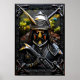 A warrior in black armour with a scary looking warrior mask. This is a AI generated art.