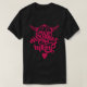 I give wanted to give this a 4 instead of a 5 because these Basic DARK T0shirts run unexpectedly SLIM or Narrow. Which is great if you do not have a potbelly, but I have a paunch. It isn't the shirt's fault that I've got a beer belly. The design and shirt itself is a quality cotton shirt. The color is more of a deep purple, but still a very pretty color. The Basic DARK T-shirts run a bit SLIMMER than the Basic Ts. The neck is a fraction narrower (or seems to be narrower) also. I'm a paunchy middle-aged woman and my neck is 12 inches (31cm) thick and the neckline fell about the same as in the photo of the man, and I had the desire to tug it a bit. So if you're a thick necked man or like loose shirts, be aware these are slimmer shirts. Once I get rid of my lockdown paunch it'll look great. The shirt washed well in cold water with no apparent bleeding. We don't have a dryer, so it hung dry. Did not shrink. Love the colors and the design. The design looks smaller on my shirt than it does on the model on-line. But still, it looks good on the shirt. The printing looks as it does on the model, just the size seems fractionally smaller. Washed garment in cold water, hung dry and design appeared unaffected.