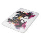 The design features a fearless warrior on a galloping horse in a unique, abstract art style. The silhouette is in dark tones, while dynamic splashes of pink, orange and yellow give the image an energetic, modern aesthetic. The warrior wears armour and holds a weapon, making the motif appear powerful and epic. Perfect for fans of mediaeval, fantasy and warrior art.