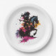 The design features a fearless warrior on a galloping horse in a unique, abstract art style. The silhouette is in dark tones, while dynamic splashes of pink, orange and yellow give the image an energetic, modern aesthetic. The warrior wears armour and holds a weapon, making the motif appear powerful and epic. Perfect for fans of mediaeval, fantasy and warrior art.