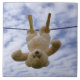 A hug bear that hangs to dry on a wash line. It's a funny picture of a situation in which adversity is solved with humor. Restoring to positive and optimistic gaze with a relativistic joke about resilience. Think back with a soft look.