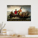 On Christmas Night in 1776, George Washington led his troops across the frozen Delaware River in a surprise attack that became the Battle of Trenton. But the biggest surprise was Gen. Washington's outfit, a fetching crimson cocktail dress, tiered and fringed, with a black feather boa and black mesh stockings. Oh-la-liberty! Inspired by this fetching Founding Father, the Continental Army defeated the Hessians due, most historians agree, to their commanding officer's choice of an absurdly bulky crinoline hoop skirt with 134" sweep. Washington's original outfit was lost in the battle, but thankfully a soldier in the next boat made this sketch of Washington Cross-Dressing the Delaware.