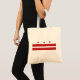 Budget tote with the flag of Washington, D.C. Inspired by George Washington's coat of arms. It was created by a Graphic Designer in 1938. A very simple design with red stars and stripes on a white background.