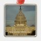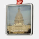 Square, metal ornament that features a photo image of the US Capitol Building, located in Washington, DC.. Makes a great travel souvenir and holiday ornament!