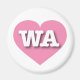 This magnet features a cool, pink heart containing the bold, white, upper case letters WA, the official abbreviation for Washington, the evergreen state.