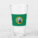 This design features the flag of the State of Washington, which is located in the Pacific Northwest region of the United States. It is named after George Washington (1732–1799), the first US president. Washington is often referred to as Washington State to distinguish it from the nation's capital, Washington DC. The flag depicts the state seal, which contains an image of state namesake George Washington, on a field of dark green. It is the only US state flag with a field of green; it is also the only state flag that contains the image of an American president.