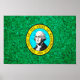 Artistic rendering of the Washington state flag with grunge texture effects.