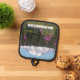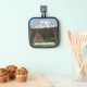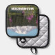Safely handle baking trays, cookie sheets and casseroles from the oven with this pot holder with black trim that features a scenic, photographic image of snow capped Mount Rainier and pink Fireweed wildflowers in the great Pacific Northwest state of Washington. Makes a great travel souvenir gift! Select your pot holder backing style.