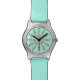 Copper chain with pale yellow beads. Chain segment is replicated so that the ends point to the five minute clock segments (where the numerals would be). Lite aqua background may be customised to match choice of band colour.
