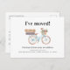 I've Moved Modern Change of Address Moving Postcard. On the move on my bike moving change of address announcement card featuring a watercolor feminine bicycle with a flower basket and luggages on the rack. Perfect to let friends and family know about your new address and where the likely housewarming party will happen. Add your new details by clicking the "Personalise" button