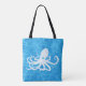 Vintage style octopus on a background of waves for a beach tote that stands out.