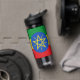 Stay hydrated in style with this water bottle featuring the flag of Ethiopia. The vibrant green, yellow, and red colours, along with the blue circle and star in the centre, showcase Ethiopia’s rich heritage and national pride. This water bottle is perfect for those who want to combine functionality with a bold expression of their Ethiopian roots, whether you’re at the gym, in the office, or on the go.