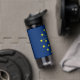 This water bottle proudly displays the flag of Indiana, chraacterised by a blue field with nineteen stars and a gold torch that symbolises liberty and enlightenment. The stars represent Indiana as the 19th state to join the Union. This iconic design reflects the state's history and values.