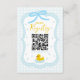 Baby blue gingham baby shower with a hand drawn bow. Water droplets frame a rubber duck surrounded by bubbles