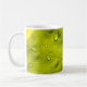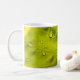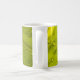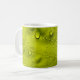 Water drops on green leaf coffee mug